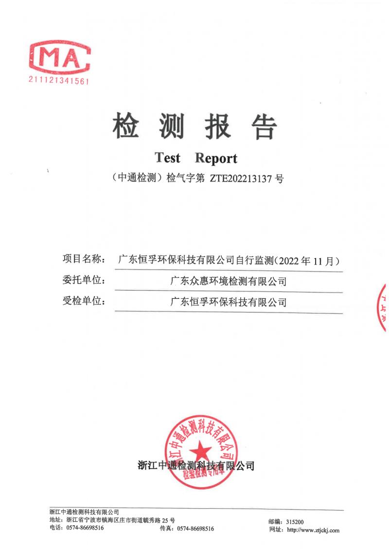 (恒孚)22年12月廢氣檢測(cè)報(bào)告ZTE202213137